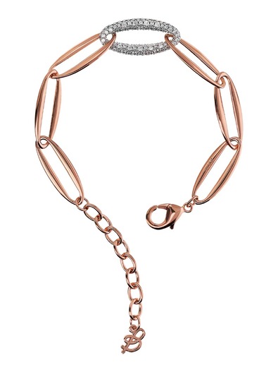 Bronzallure bracelet made of Golden Rose alloy, 18kt rose gold plated, with shiny marquise links, one of which, central, in cubic zirconia pave, luminous quality. Length 18+4 cm extension. Lobster clasp closure.