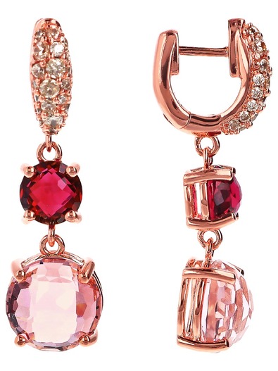Bronzallure pendant earrings made of Golden Rose alloy, 18kt rose gold plated, with cubic zirconia pave counter-link, luminous quality and graduated gem prism stones (6.5/10 mm). Length 3 cm. Closure with interlocking pin.