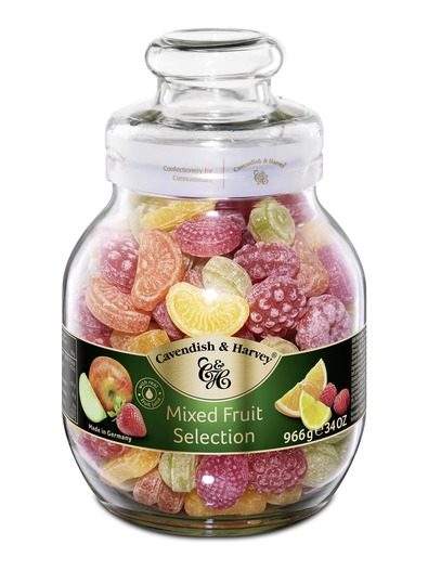 This deluxe jar contains a delicious medley of fruit sweets made with real fruit juice: juicy lemon and orange, crispy apple, raspberry and sweet strawberry. For confectionery connoisseurs who want to savour the extraordinary.