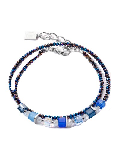 SwarovskiA® Crystals, cut glass. Clasp stainless steel. Synthetic Tiger’S Eye, polaris, stainless steel.
