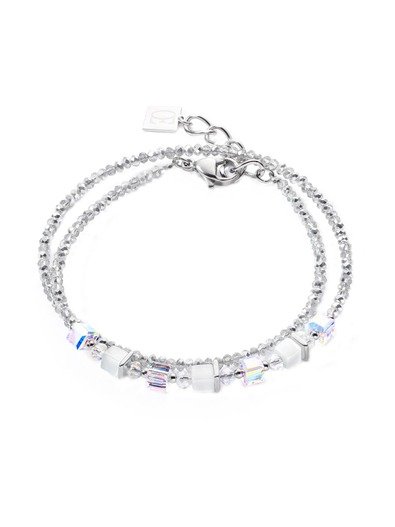 swarovskiA® crystals, cut glass. clasp stainless steel. synthetic tiger’s eye, stainless steel.