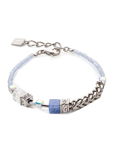 Rock crystal, rose aventurine, SwarovskiA® Crystals, rhinestone rondelles, cut glass, stainless steel. Clasp stainless steel.Blue aventurine, howlite.