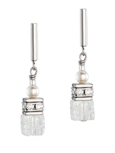 Crystal Pearls by SwarovskiA®, rhinestone rondelles. Rock Crystal, stainless steel. Ear studs stainless steel.
