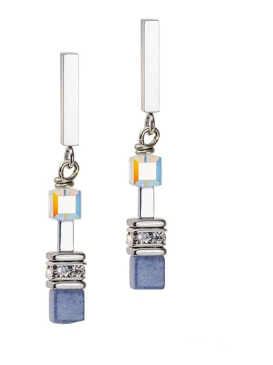 SwarovskiA® Crystals, rhinestone rondelles, stainless steel. Ear studs stainless steel.Blue aventurine.