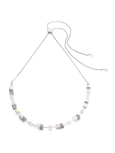 Rock Crystal, SwarovskiA® Crystals, rhinestone rondelles. Howlite, stainless steel. Sliding closure stainless steel.