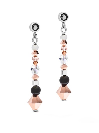 swarovskiA® crystals, haematite, stainless steel. ear studs stainless steel. striped onyx.