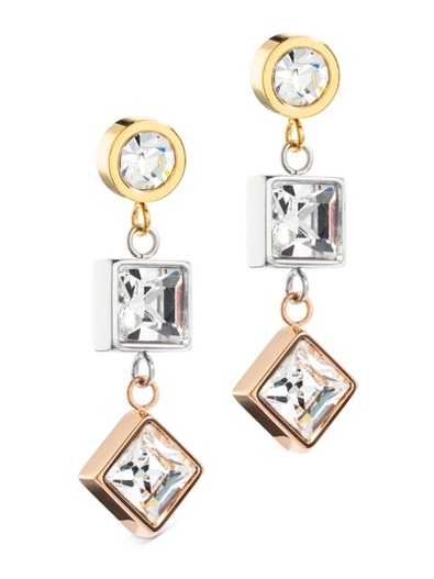 Crystal Glass, stainless steel. Stainless steel gold, stainless steel rose gold. Ear studs stainless steel gold plated.