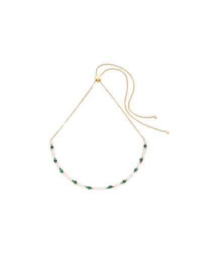 Freshwater Pearl, malachite, stainless steel gold. Sliding closure stainless steel gold.