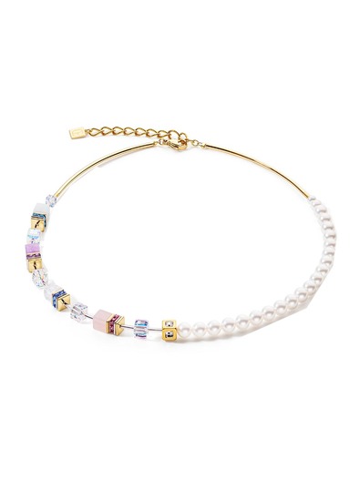 Rose quartz, rock crystal, light amethyst, amazonite, Crystal Pearls by SwarovskiA®, SwarovskiA® Crystals, rhinestone rondelles, crystal glass, stainless steel gold. Clasp stainless steel gold plated.