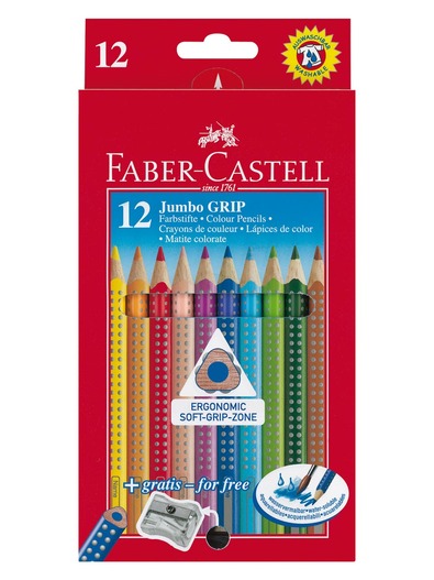 Jumbo Grip colour pencil with patented grip zone for a secure, non-slip grip; Ergonomic triangular shape; Extra thick jumbo lead; Brilliant colours; Soft colour laydown; Made in Germany; Water-soluble; Highest break-resistance due to secural bonding process (SV); Washes out of most fabrics; Wood from sustainable forestry; Environmentally-friendly water- based varnish; Suitable for right- and left-handers; With name panel; Available individually in 34 different colours; Cardboard box of 12;