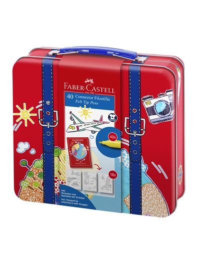 The felt tip pen for colouring, building and playing; Connector felt tip pen suitcase; Content: 40 Connector felt tip pens in different colours, 6 connector clips, 1 passport; Due to special connecting caps, felt tip pens are easy to clip together; Vibrant colours; Twistable connecting clips enable for creative building and playing; Can be washed out of most fabrics; Pens animate to do great drawing techniques for unlimited creativity; High-quality box – ideal for storage and for on the way;