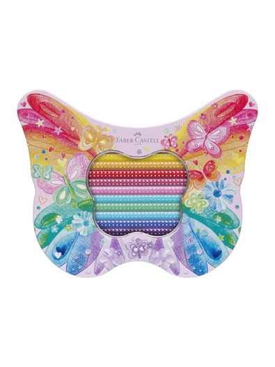 Hi Sparkle! Sparkle colour pencils make childrenA´s eyes glitter; Colour pencils with an attractive sparkle effect; Colourful butterfly-shaped tin containing 12 colour pencils in brilliant standard colours and 8 pastel colours; Butterfly stickers included; Ideal for storage and for on the move; Ergonomic triangular shape; Brilliant and pastel colours with a soft colour laydown; Highest break resistance due to secural bonding process (SV); Washes out of most fabrics; Wood from sustainable forestry; Environmentally-friendly water-based varnish; Colour pencils from carbon-neutral production; Suitable for right- and left-handers