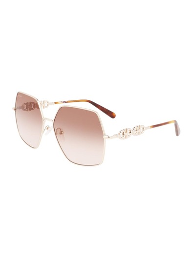 Gancini style SF291S is a lightweight geometric metal frame. New playful and refined interpretation of the iconic Gancini, the Gancini metal chain elevates the thin metal temples. This style is prescription friendly. Sold in the Ferragamo semi-rigid case.
