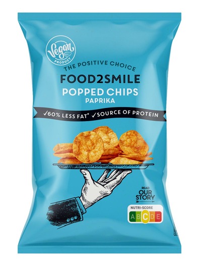With these popped chips you snack with a smile: lots of protein A very little fat. Many chips are made from potato, which is only starch. These chips are a source of protein as they consist of half soy. They contain up to 60% less fat than fried chips, are gluten free and with no added sugars. Deliciously 100% natural flavoured. A truly responsible choice.