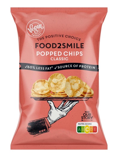 With these popped chips you snack with a smile: lots of protein, very little fat, lots of taste! Many chips are made from potato, which is only starch. These chips are a source of protein as they consist of half soy. They contain up to 60% less fat than fried chips, are gluten free and with no added sugars. A truly responsible choice.