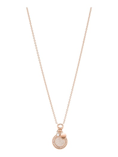 This 18″ + 2″ necklace features a rose gold-tone oval cable chain with a clear crystal halo pendant, a glitz charm, a rose gold-tone disc charm and a lobster clasp closure.