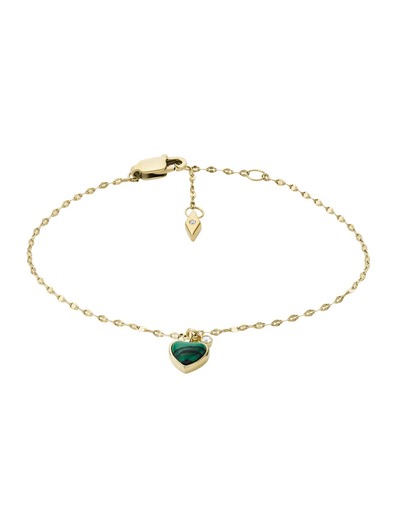 This chain bracelet features a green malachite heart, gold-tone stainless steel and a lobster clasp closure.