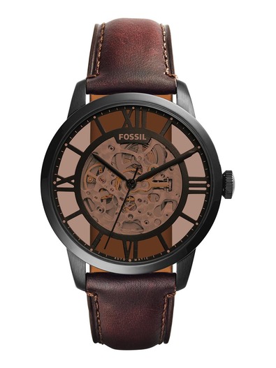 The top-of-the-hour Townsman automatic takes its cues from vintage designs. Included with our up-to-the-minute innovation? A refined black case houses an amber crystal lens and a see-through skeleton dial.