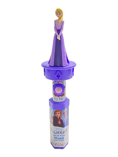 Press the button to hear Elsa talk as the base lights up. In the handle you will find 15g fruit flavoured pressed dextrose candy (Canadian origin).