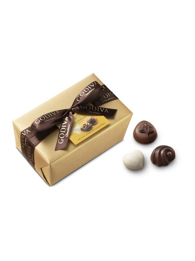 The ultimate gift from Godiva. The classic and elegant Belgian ballotin wrapped in luxurious gold paper with a hand-tied ribbon contains a rich assortment of Godiva premium milk, white and dark chocolates, carefully selected to offer a wide range of the finest fillings to suit all tastes.