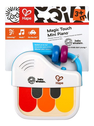 The piano bestseller is finally available in a mini format for babies. The innovative touch technology offers two ingenious game modes. After listening and playing music has been encouraged, the baby can demonstrate their motor skills by playing ring games.
