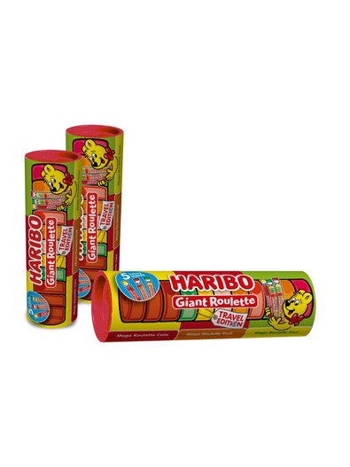 The colourful HARIBO Giant Roulette Multi Flavours is back! The appealing new version of the Giant Roulette Travel Edition is bright on the eye and bursting with flavour. Inside the handy XXL tube you will find five iconic and beloved Mega Roulette rolls – cola, fruit and sour. The mix of flavour choices ensures everyone gets their favourite and the convenience of 5 individually wrapped Mega Roulettes makes Giant Roulette perfect for sharing. The sturdy tube is easily stored in a pocket or bag and keeps the flavours freshon even the longest journey.