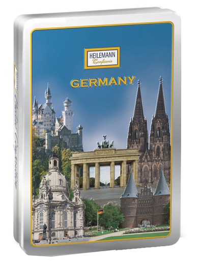 Smooth-melting praline variations without alcohol in a high-quality tin with relief pictures of well-known hallmarks of Germany. A delicious way to make your Germany visit last!
