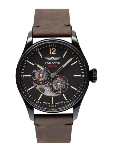 The cockpit of the D-AQUI aeroplanes with its fascinating displays and instruments still is a very special attraction to man of today. The same fascination is mediated by the watches of the series AIron Annie Flight ControlA through the fine interplay of the dial in cockpit-look with a very sportive casing.