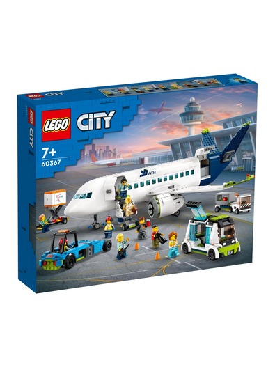 The LEGOA® City Passenger Airplane is due for departure. The apron bus is on its way and itAs time to position the airstair to board the passengers. A catering truck is loading up food and beverages, the baggage handlers have arrived and the pushback tug is ready to wheel out the aircraft. On board the aisle is clear, and the seats and toilet are clean and ready. Prepare for takeoff!