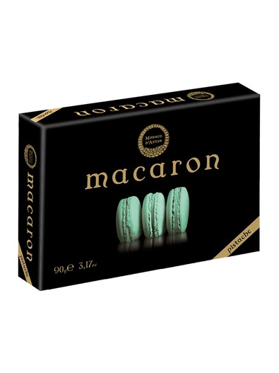Elegant packaging encloses the original macaron, biscuit with half a century of history, made of two soft meringues made with almonds stuffed with pistachio cream