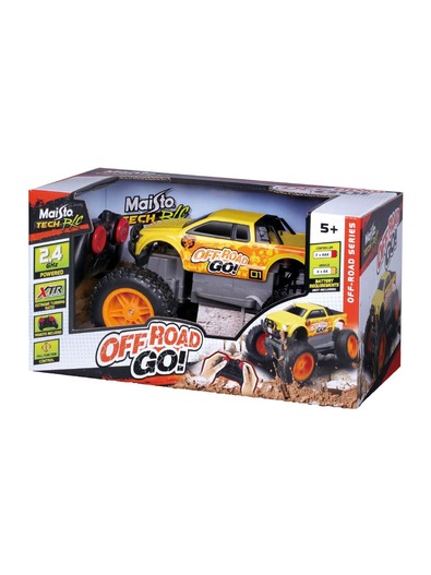 The remote-controlled monster truck “Off-Road Go” from Maisto Tech R/C ensures enormous fun for big and small off-road fans. With a top speed of approx. 3.6 km/h , the remote-controlled truck can also be effortlessly controlled by young off-road fans aged 5 and over. The vehicle has a control range of 10 m, a 2.4 GHz frequency and an easy-to-use gamer controller. Batteries included. (4x AA for the vehicle and 2x AAA for the remote control).