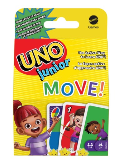 cards will have players jumping, dancing, clapping or bending whenever they play a card with a special Star icon on it. It’s an active way to learn to play and great fun on game night with 2 to 4 players ages 3 years old and up. Colors and decorations may vary.