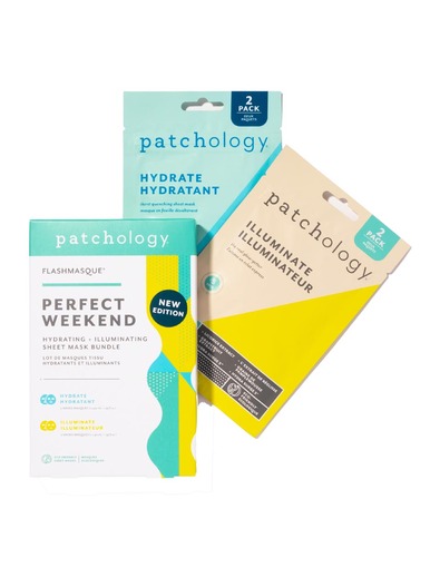 Hydrate 2 Pack Sheet Mask: WATER (AQUA/EAU), GLYCERIN, BUTYLENE GLYCOL, DIPROPYLENE GLYCOL, PEG-60 HYDROGENATED CASTOR, HYDROXYACETOPHENONE, BETAINE, XANTHAN GUM, CAPRYLYL GLYCOL, PANTHENOL, 1,2- HEXANEDIOL, SODIUM HYALURONATE, TREHALOSE, PROPANEDIOL, SODIUM CITRATE, CITRIC ACID, SODIUM PHYTATE, SODIUM HYALURONATE CROSSPOLYMER, HYDROLYZED GLYCOSAMINOGLYCANS, CENTELLA ASIATICA EXTRACT, OLEA EUROPAEA (OLIVE) FRUIT OIL, DIPOTASSIUM GLYCYRRHIZATE, UREA, YEAST AMINO ACIDS, BENZYL GLYCOL, ETHYLHEXYLGLYCERIN, INOSITOL, TAURINE, HYDROLYZED HYALURONIC ACID, PAEONIA SUFFRUTICOSA ROOT EXTRACT, CHAMOMILLA RECUTITA (MATRICARIA) FLOWER EXTRACT, POTASSIUM SORBATE, GLYCYRRHIZA GLABRA (LICORICE) ROOT EXTRACT, ANGELICA GIGAS ROOT EXTRACT, MORUS ALBA BARK EXTRACT, PHELLINUS LINETEUS EXTRACT, SCUTELLARIA BAICALENSIS ROOT EXTRACT, POLYGONUM MULTIFLORUM ROOT EXTRACT, SOPHORA FLAVESCENS ROOT, CIMICIFUGA RACEMOSA ROOT EXTRACT, SESAMUM INDICUM (SESAME) SEED EXTRACT, HYALURONIC ACID, RASPBERRY KETONE, PHENOXYETHANOL, FRAGRANCE (PARFUM) Illuminate 2 Pack Sheet Mask: WATER (AQUA/EAU), GLYCERIN, BUTYLENE GLYCOL, DIPROPYLENE GLYCOL, BETAINE, HYDROXYACETOPHENONE, XANTHAN GUM, CAPRYLYL GLYCOL, PANTHENOL, POLYGLYCERYL-10 LAURATE, SODIUM CITRATE, CITRIC ACID, SODIUM PHYTATE, UREA, YEAST AMINO ACIDS, TREHALOSE, INOSITOL, TAURINE, 1,2-HEXANEDIOL, DIETHYLHEXYL SODIUM SULFOSUCCINATE, GLYCYRRHIZA GLABRA (LICORICE) ROOT EXTRACT, CENTELLA ASIATICA EXTRACT, SODIUM ASCORBYL PHOSPHATE, SODIUM HYALURONATE, CITRUS PARADISI (GRAPEFRUIT) FRUIT EXTRACT, DIPOTASSIUM GLYCYRRHIZATE, POTASSIUM SORBATE, PAEONIA SUFFRUTICOSA ROOT EXTRACT, CHAMOMILLA RECUTITA (MATRICARIA) FLOWER EXTRACT, ETHYLHEXYLGLYCERIN, GLUCOSE, HYDROLYZED PEA PROTEIN, SODIUM CHLORIDE, SODIUM SUCCINATE, PHENOXYETHANOL, FRAGRANCE (PARFUM)
